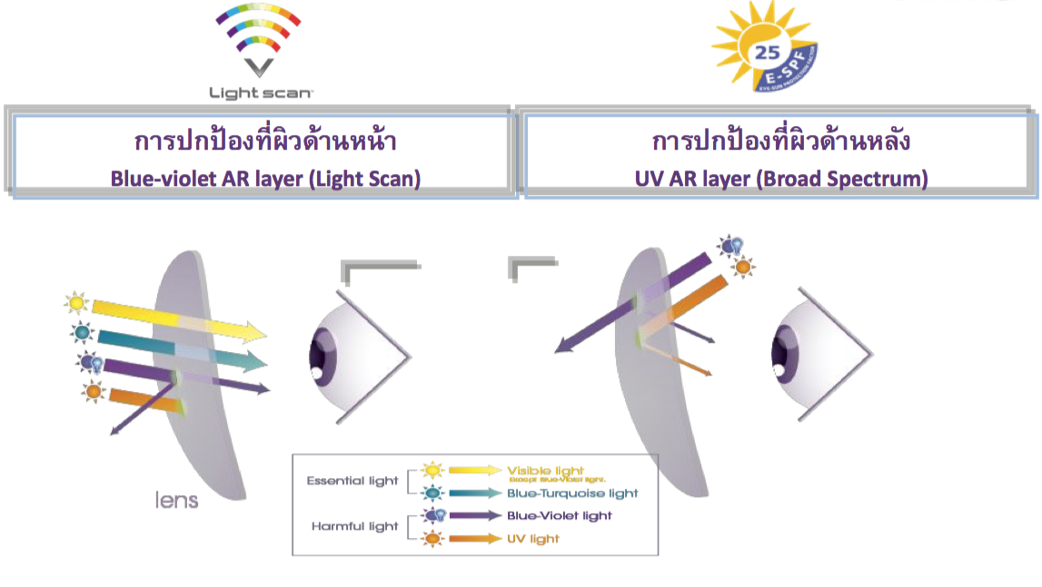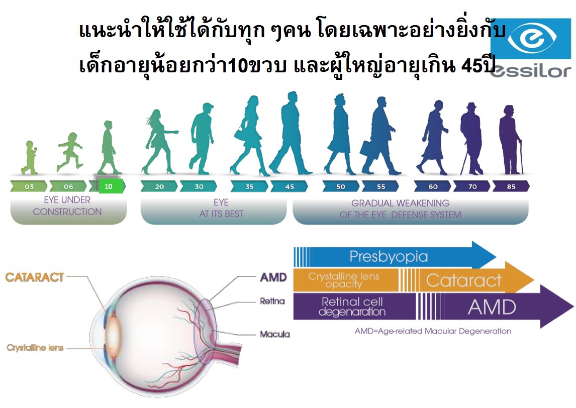 คุณประโยชน์ในระยะยาว ป้องกันดวงตาเสื่อมสภาพก่อนวัยอันควรและการเกิดโรคเกี่ยวกับตา โดยการกรองเฉพาะแสงและรังสีที่เป็นอันตรายต่อดวงตาออกไป