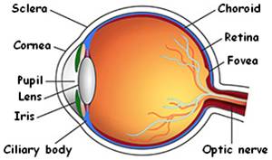 จอประสาทตา(Retina)จอประสาทตาประกอบด้วยเส้นประสาทตาที่มีความละเอียดสูงอยู่ในผนังชั้นในของลูกตา ทำหน้าที่คล้ายกับฟิล์มถ่ายรูปโดยจะส่งผ่านรูปไปยังสมอง ซึ่งในภาวะสายตาปกติ การหักเหของแสงจะลงมาตกกระทบที่จอประสาทตาพอดี