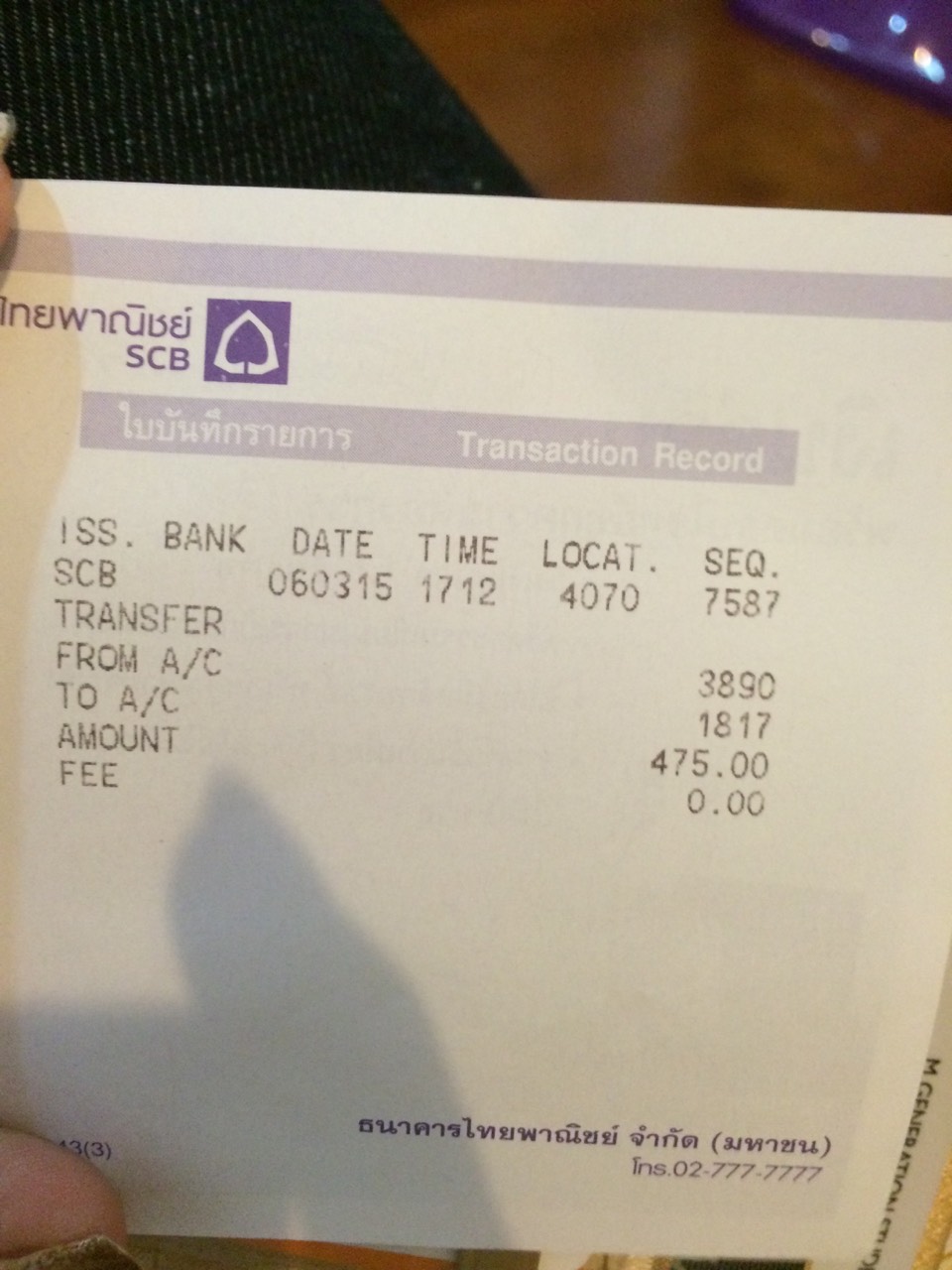 โอนเงินวันที่ 6 มีนา เวลา17.12 ยอดโอน 475บาทค่ะ เลขที่ออเดอร์ 000246 |