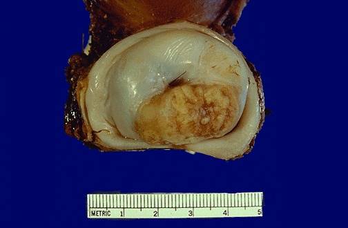 รูปที่ 2 ก้อนเนื้อมะเร็งปากมดลูกของจริงที่ถูกตัดออกมาพร้อมปากมดลูก แน่ใจหรือว่าเป็นตกขาวปกติ? “คงเป็นตกขาวปกติ ไม่มีอะไรหรอก” ที่กล่าวว่าเป็นการอ้างก็เพราะเป็นธรรมดาของหญิงไทยที่มักจะขี้อาย เรียบร้อยเหมือนผ้าพับไว้บ้าง ไม่เหมือนบ้าง แต่ก็มักจะอายกันเป็นส่วนใหญ่ ผิดกับเด็กหญิงอเมริกันที่เริ่มตรวจภายในกันตั้งแต่วัยทีนเอจ แต่ก็เป็นข้อดีไม่น้อยเพราะทำให้อัตราการตายจากโรคมะเร็งปากมดลูกไม่สูงเท่า ในคนไทยเรา เพราะเมื่อตรวจภายในได้ส่องเข้าไปดูถึงปากมดลูก ถ้าเห็นติ่งเห็นก้อนอะไรผิดปกติก็สามารถตัดและแก้ได้ทันตั้งแต่เนิ่นๆ มะเร็งยังไม่ทันลามไปต่อมน้ำเหลืองก็สกัดได้ทันก่อน พอมาเห็นคุณย่าคุณยายบ้านเราที่กว่าจะตรวจพบมะเร็งก็ “สายเสียแล้ว” ถึงรู้สึกเสียใจและเสียดายมากๆทีเดียวครับ