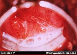 รูปที่ 6 เชื้อพยาธิทริโคโมแนสในช่องคลอดทำให้เกิดตกขาวผิดปกติแบบเป็นฟองและคัน