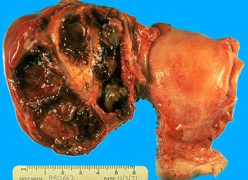 รูปที่ 8 ก้อนฝีอักเสบรุนแรงที่ปีกมดลูกมีลักษณะเป็นกลุ่มคล้ายพวงองุ่น ดูแล “กันและกัน” ให้ดีจะไม่มีภัยเงียบจากตกขาว