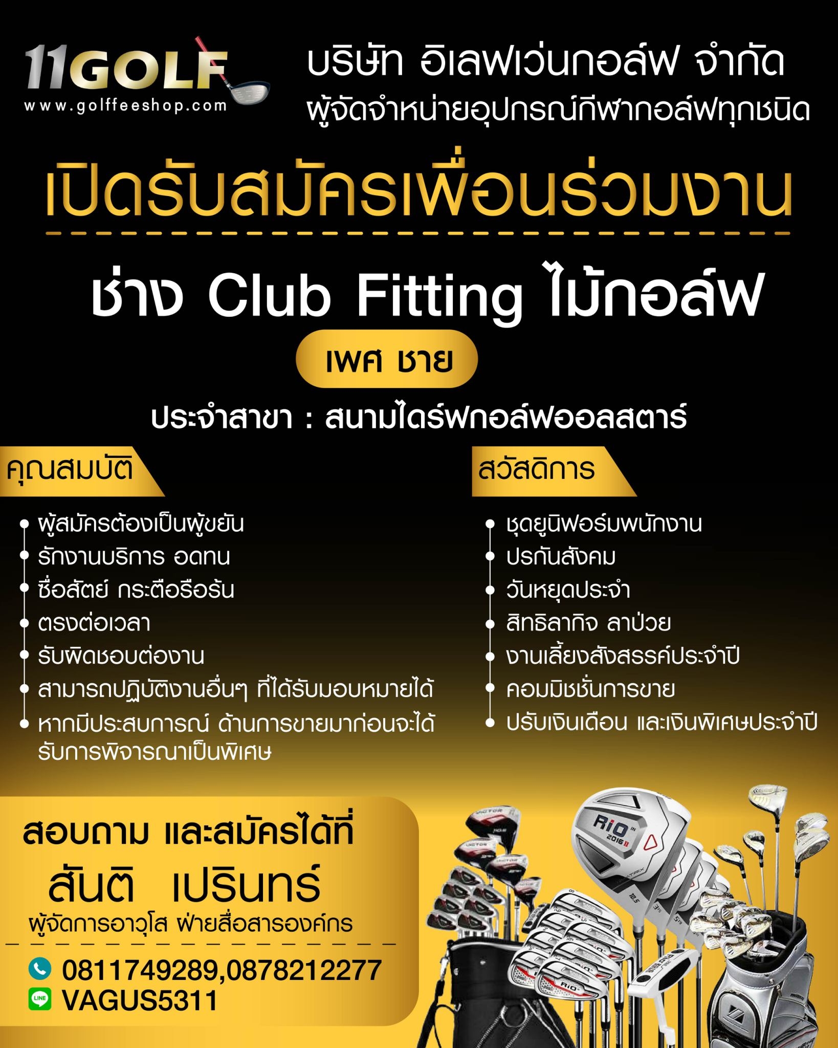 บริษัท อิเลฟเว่นกอล์ฟ จำกัด ผู้จัดจำหน่ายอุปกรณ์กีฬากอล์ฟทุกชนิด เปิดรับสมัครเพื่อนร่วมงาน รับสมัคร พนักงานขาย ชาย ช่าง Club Fitting ไม้กอล์ฟ สถานที่ : สนามไดร์กอล์ฟออลสตาร์ คุณสมบัติตามด้านล่างนี้เลยจ้าา สอบถาม และสมัครได้ที่ คุณ สันติ เปรินทร์ ผู้จัดการอาวุโส ฝ่ายสื่อสารองค์กร โทร: 081-1749289, 087-8212277 Line : VAGUS5311 [url=https://www.img.in.th/image/YGmSi9][img]https://www.img.in.th/images/370eb2039cfd9eaf98499b24996d896a.jpg[/img][/url]