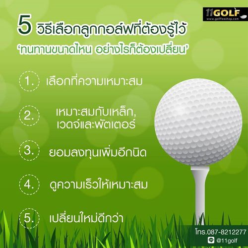 5 วิธีเลือกลูกกอล์ฟที่ต้องรู้ไว้ ทนทานขนาดไหน อย่างไรก็ต้องเปลี่ยน เชื่อเหลือเกินครับว่านักกอล์ฟจำนวนมากมักจะมี "วิธีการเลือกลูกกอล์ฟ" ที่แตกต่างกันไป บางคนเลือกที่ราคา บางคนพิจารณาจากความชอบส่วนตัว หรือบางคนมีความสนใจมากหน่อย ก็จะเลือกโดยการ ทดสอบว่าเหมาะสมกับสวิงของตนเองหรือไม่ ซึ่งทั้งหมดล้วนเป็นปัจจัยสำคัญในการเลือก ซื้อลูกกอล์ฟมาใช้งานทั้งสิ้น ขอแนะนำขั้นตอนง่าย ๆ ในการพิจารณาเลือกลูกกอล์ฟครับ 1. เลือกที่ความเหมาะสม 2. เหมาะสมกับเหล็ก, เวดจ์และพัตเตอร์ 3. ยอมลงทุนเพิ่มอีกนิด 4. ดู...