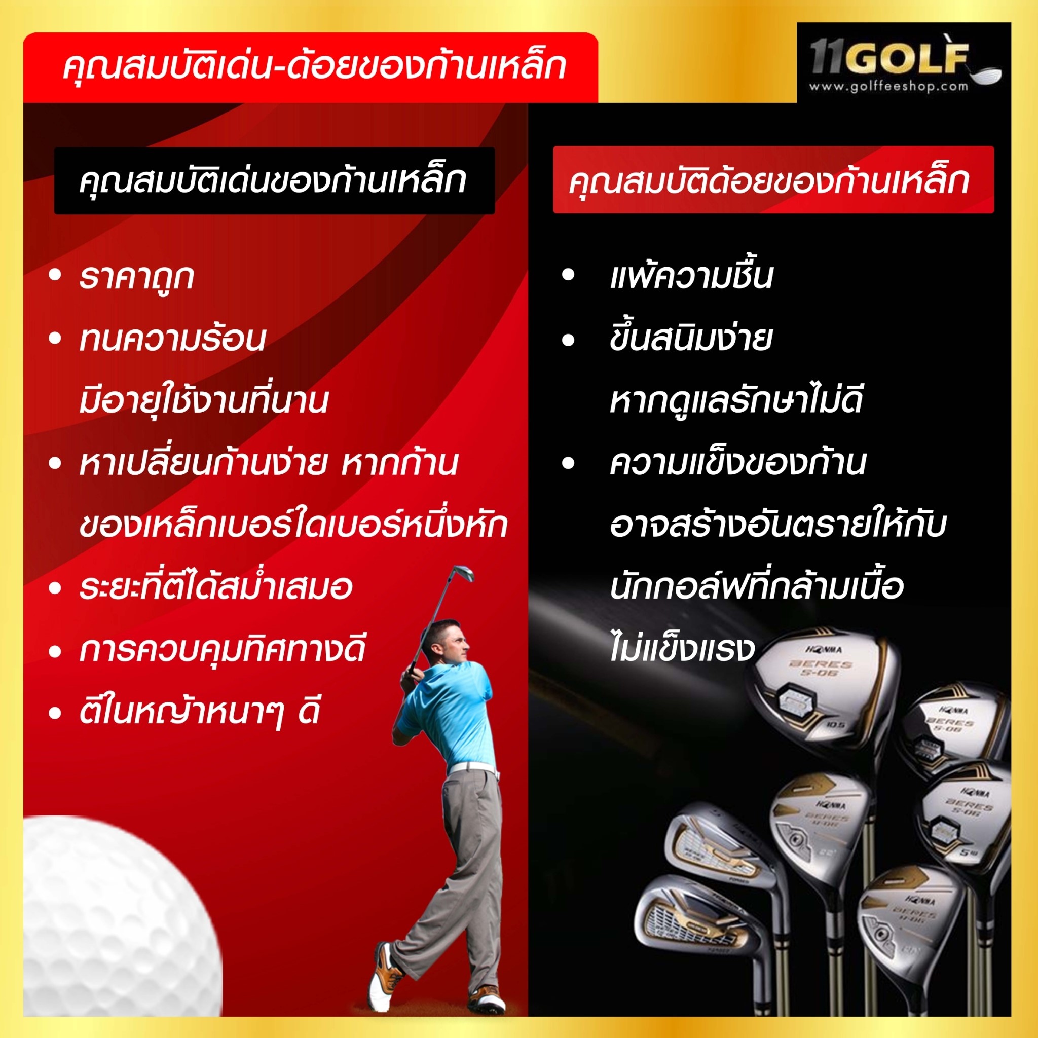 น้ำหนักก้าน (Shaft Weight) ปัจจุบันก้านของไดรเวอร์ส่วนใหญ่จะใช้เป็น ก้านกราไฟท์ ต่างจากในอดีตที่ก้านไดรเวอร์ ยังเป็นก้านเหล็ก แต่หลังจากที่ไทเกอร์ วุดส์ เปลี่ยนไปใช้ก้านกราไฟท์ แล้วสามารถตีได้ ระยะไกลขึ้น ก้านเหล็กในหัวไดรเวอร์ก็ไม่เป็น ที่นิยมอีกต่อไป ก้านที่มีน้ำหนักระหว่าง 35-40 กรัม เหมาะกับยักกอล์ฟสตรีทั่วๆไป โดยเฉพาะนักกอล์ฟสตรีรูปร่างเล็ก กล้ามเนื้อไม่แข็งแรง ก้านที่มีน้ำหนักระหว่าง 40-45 กรัม เหมาะกับนักกอล์ฟซีเนียร์ นักกอล์ฟเยาวชน หรือนักกอล์ฟสตรี ก้านที่มีน้ำหนักระหว่าง 45-60 กรัม เหมา...