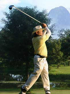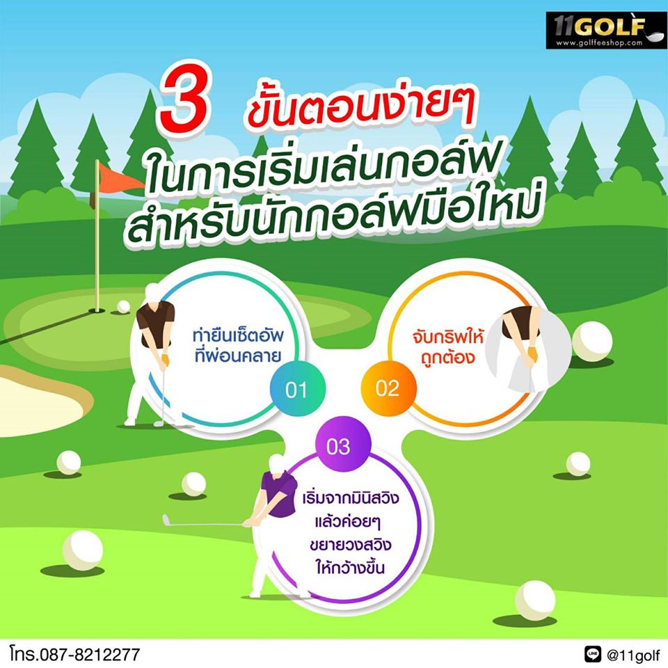 การยืนท่ายืนก้นโด่ง หลังตรง น้ำหนักทิ้งลงประมาณกลางฝ่าเท้าถึงส้นเท้า ย่อเข่า เหมือนที่เค้าพูดกันว่า ยืนแบบนักเทนนิสเตรียมตีลูก พอ Stance ดี ยืนมั่นแล้วคุณน่าจะรู้สึกตึงนิดๆ ตรงขาอ่อนด้านหลังครับ เชิดคางสูง มองลูกผ่านโหนกแก้ม พอตอน Takeaway, Backswing หรือ Downswing อย่าก้มหัวลงนะครับ ให้รู้สึกว่าคางยังเชิดอยู่เท่าเดิม เพื่อรักษาระยะระหว่างคางถึงลูกให้เท่าเดิม เค้าว่ากันว่า Swing Center ก็คือบริเวณคางหรือใต้คางนี่แหละครับ ถ้าตอน Downswing ย่อลงหรือก้มลงพรวดพราด หรือถลำไปข้างหน้าหละก็ Swing Center...