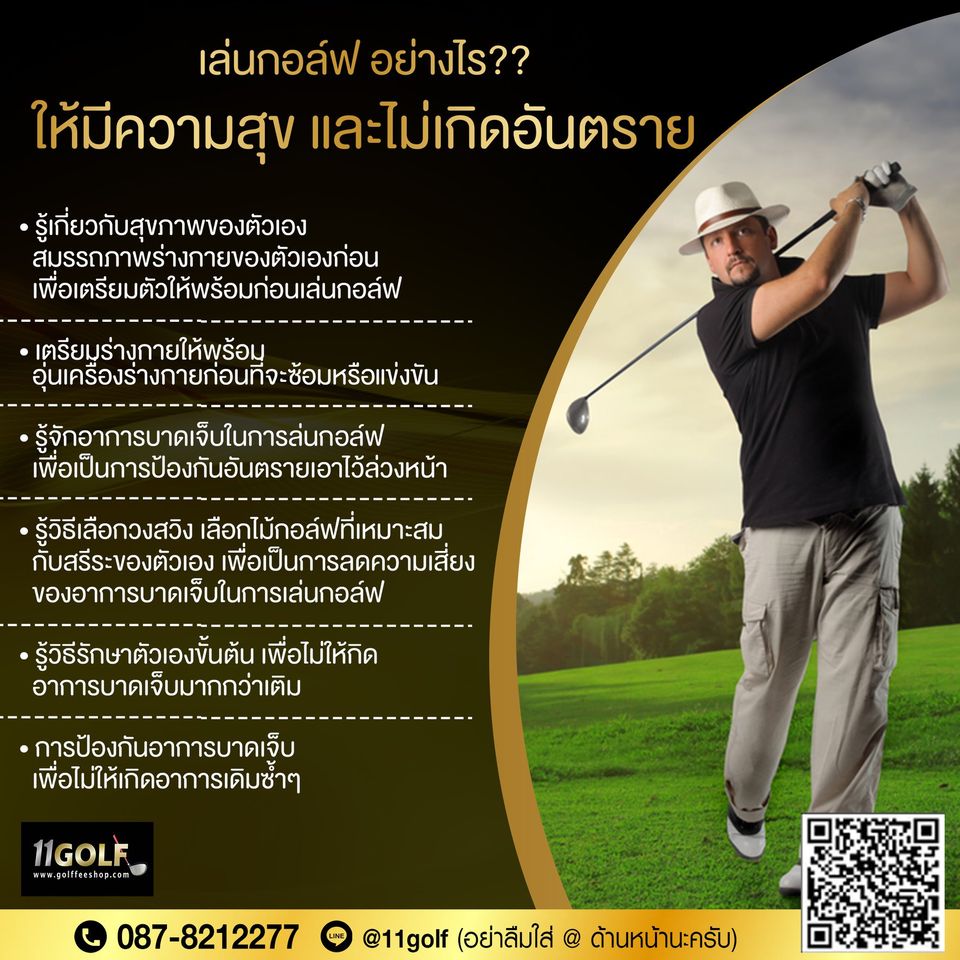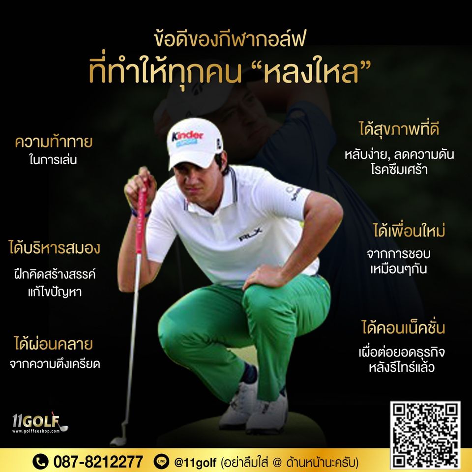 ข้อดีของกีฬากอล์ฟ ที่ทำให้ทุกคน "หลงใหล" ความท้าทายในการเล่น ได้บริหารสมองฝึกคิดสร้างสรรค์แก้ไขปัญหา ได้ผ่อนคลายจากความดึงเครียด ได้สุขภาพที่ดี หลับง่าย,ลดความดันโรคซึมเศร้า ได้เพื่อนใหม่จากการชอบเหมือนๆกัน ได้คอนเน็คชั่น เผื่อต่อยอดธุรกิจหลังรีไทร์แล้ว ▬▬▬▬▬▬▬▬▬▬▬▬▬▬▬ ติดต่อสอบถาม/สั่งซื้อสินค้า TEL : 0878212277 LINEID : @11golf LINE : https://line.me/R/ti/p/%4011golf