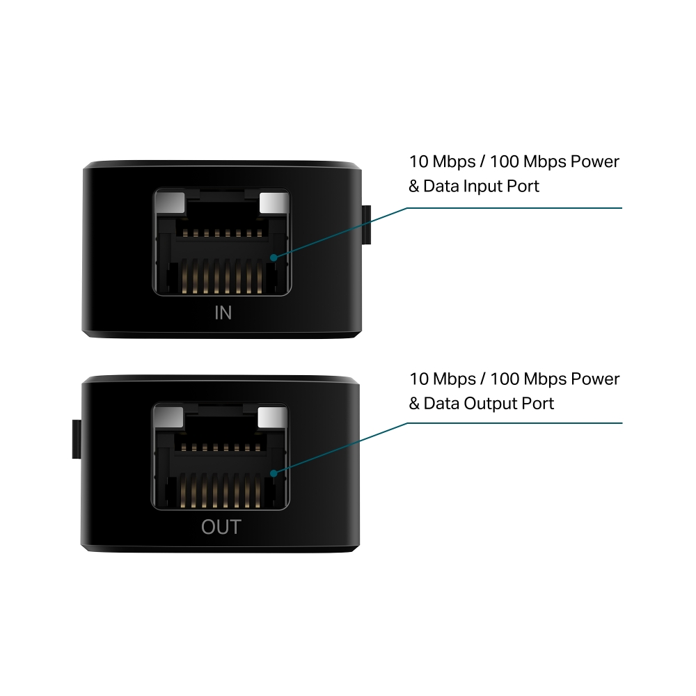 การขยายระยะสัญญาณ : ขยายการเชื่อมต่อเครือข่าย PoE/PoE+ เพิ่มเติมได้ถึง 100 เมตร ในโหมด 100 Mbps หรือสูงสุด 250 เมตร (บางแหล่งระบุถึง 350 เมตร เมื่อใช้หลายตัวต่อกัน) ในโหมด 10 Mbps จากอุปกรณ์ต้นทาง