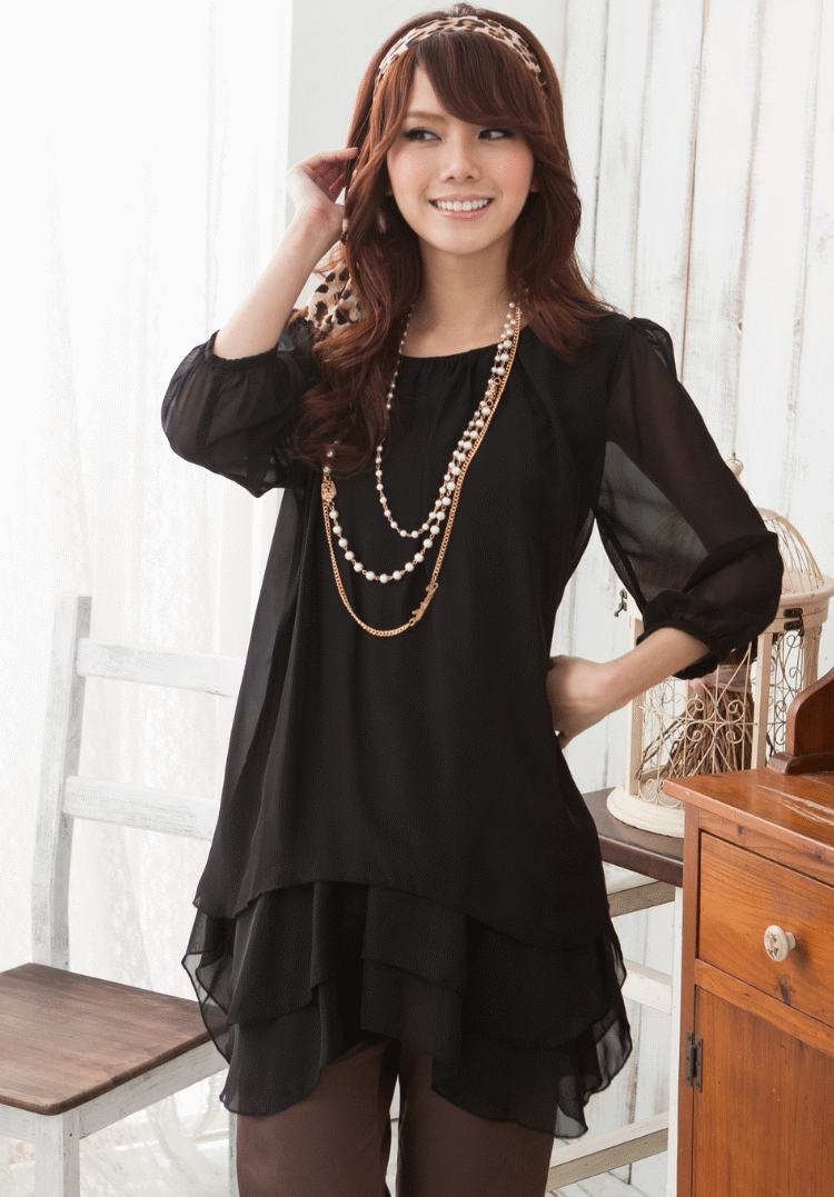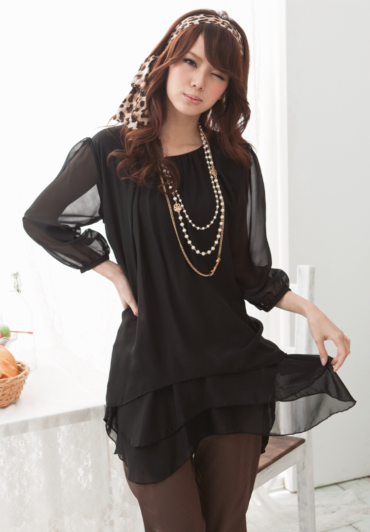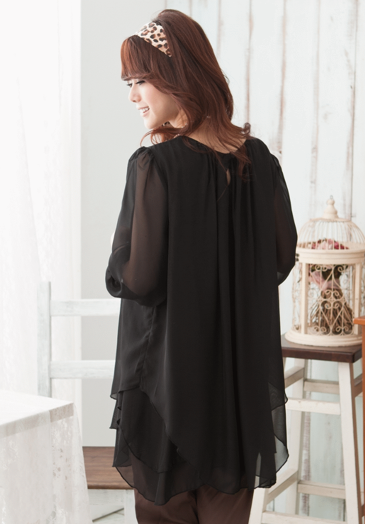 เสื้อแฟชั่นสาวอวบ เสื้อยาวเก๋ๆแบรนด์ IOEOI ผ้าชีฟองเนื้้อ