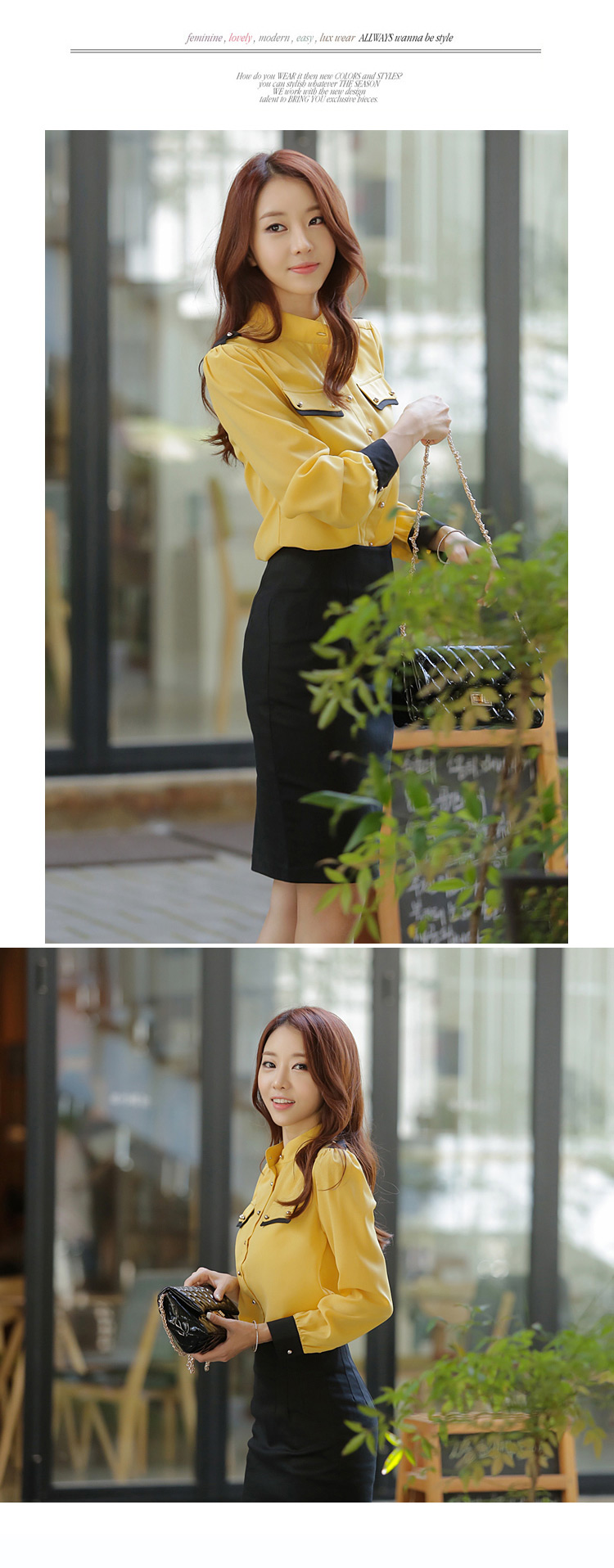 ทิ้งตัว คอปีนผ่าหน้าประดับกระดุมแขนยาว เหมือนแบบ สวม