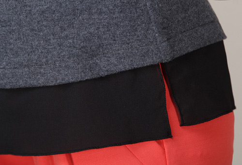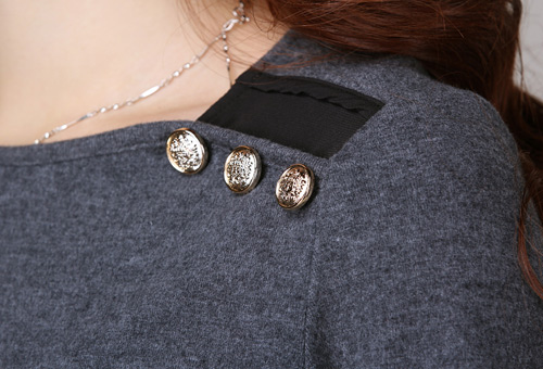 ไหล่ตัดต่อชีฟองดำ แต่งกระดุมสีทองหรุ ชายด้านล่างแต่ง