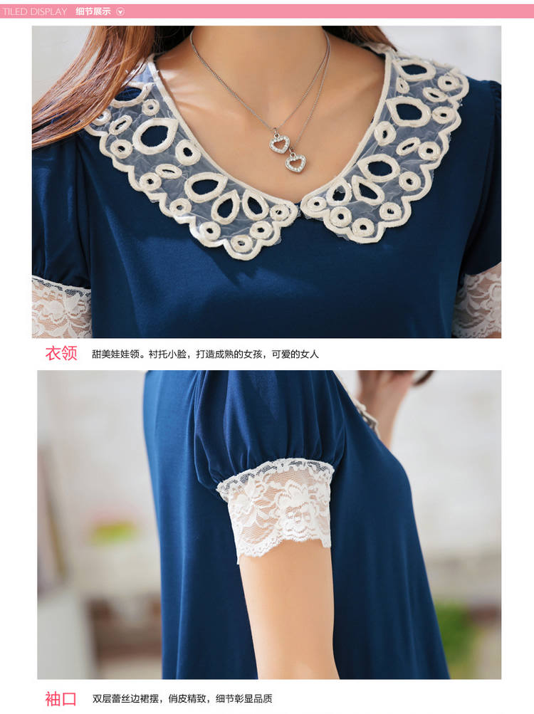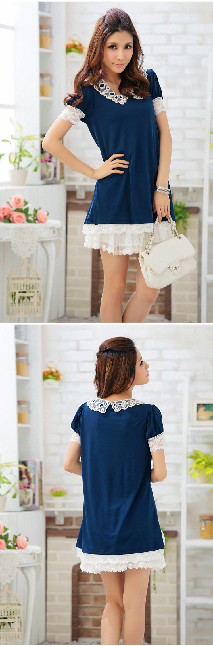 ด้านล่างแต่งลูกไม้ปักประดับเลื่อม เป็นเดรสทรงปล่อยน่ารักๆ