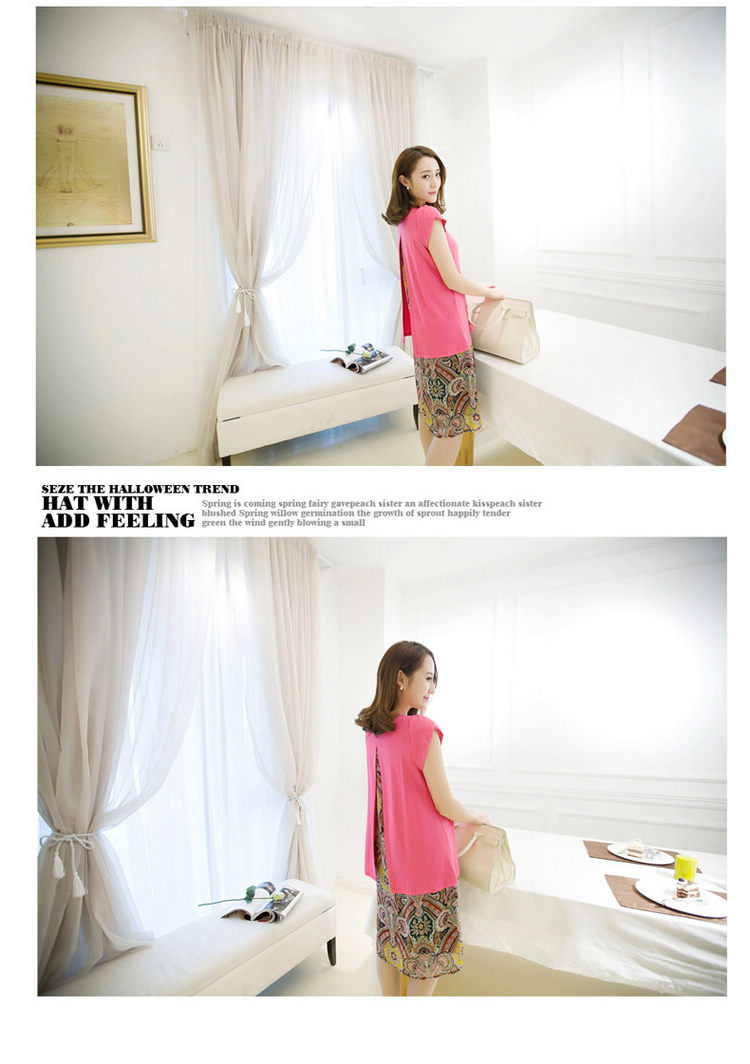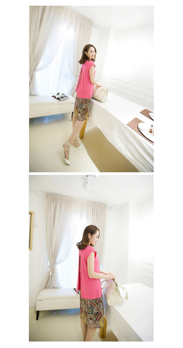 สองชิ้นติดกันเหมือนใส่สองตัว ตัวเดรสเป็นผ้าชีฟองพิมพ์