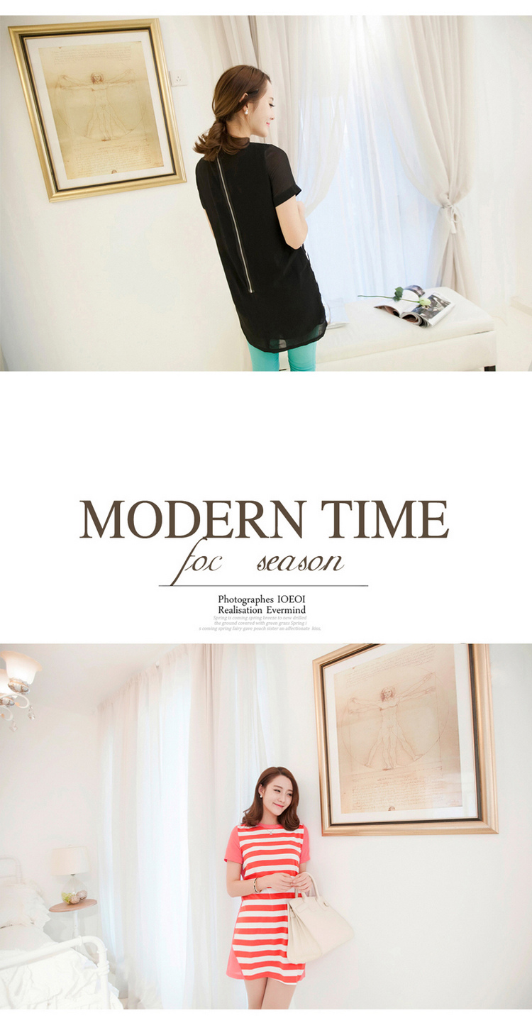 ชีฟองผสมโพลีเอสเตอร์คุณภาพเยี่ยมแต่งซิ๊บ มีซับใน แขน