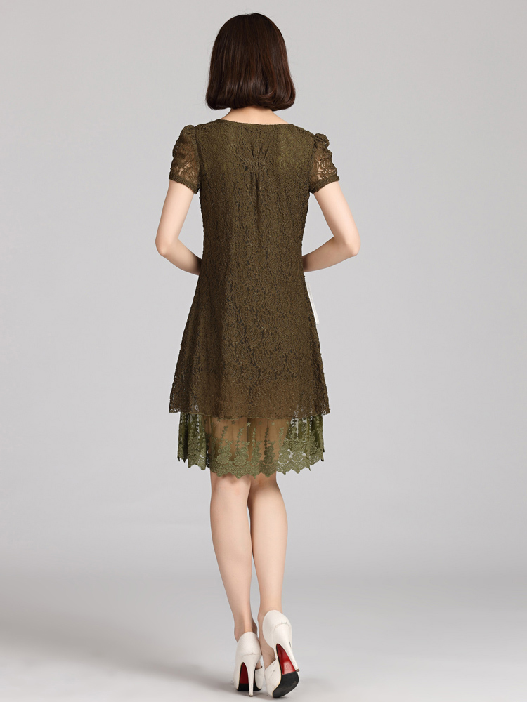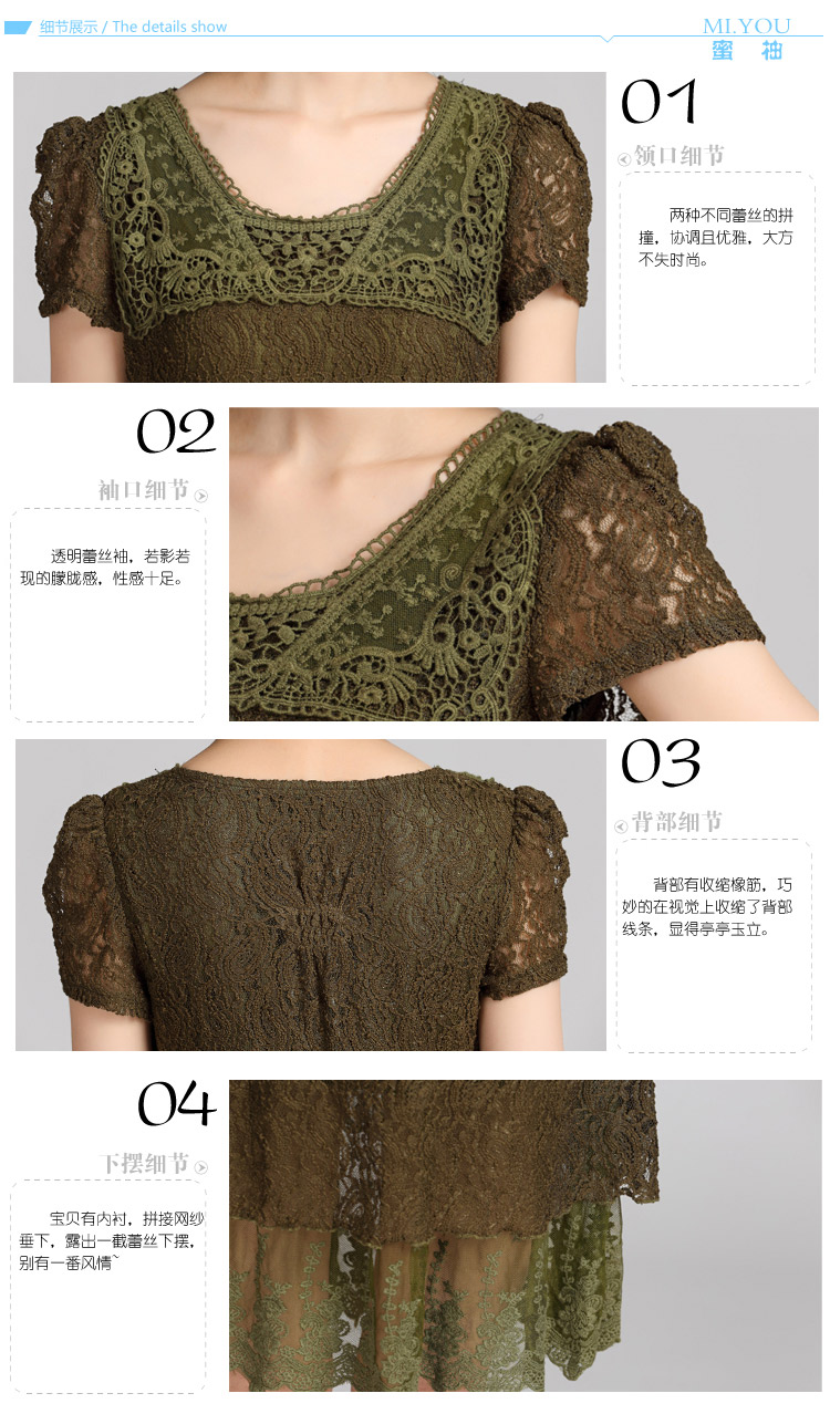 ม่เงา ทิ้งตัว แขนสั้น ช่วงอกด้านหน้าเย็บประดับด้วยลูกไม้