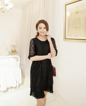 เดรสแฟชั่นสาวอวบ เดรสสุดหรูแบรนด์ IOEOI ผ้าลูกไม่้ยืด
