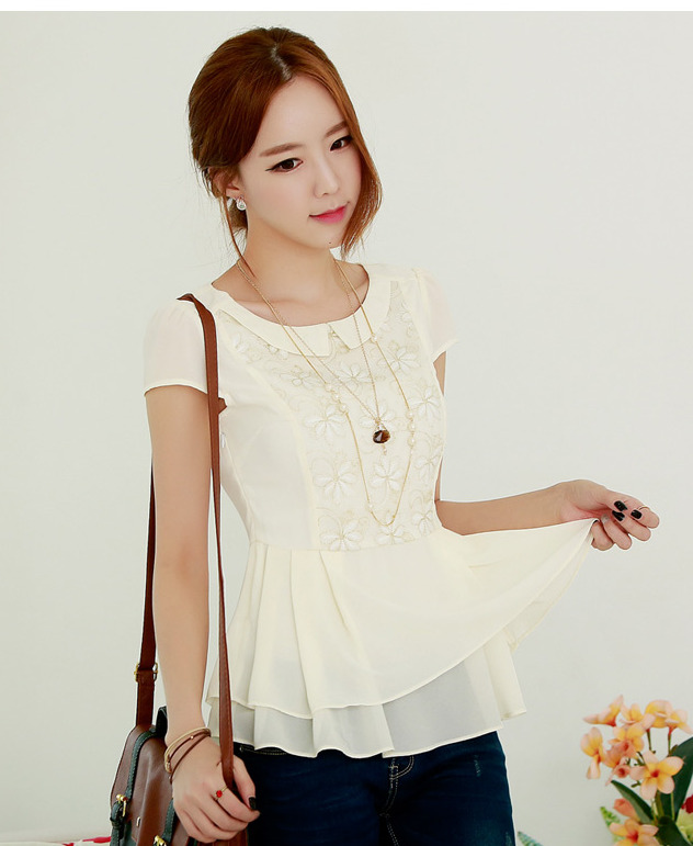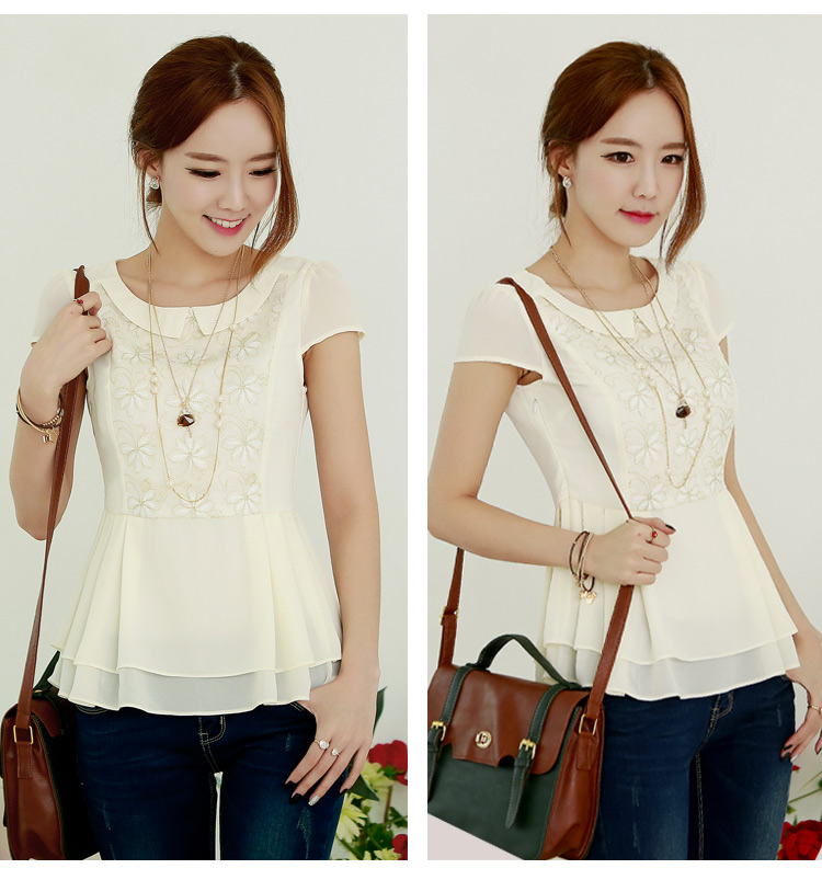 ชีฟองเนื้อละเอียด นุ่ม พริ้วทิ้งตัวดีมากๆ คอบัว แขนสั้น ช่วง