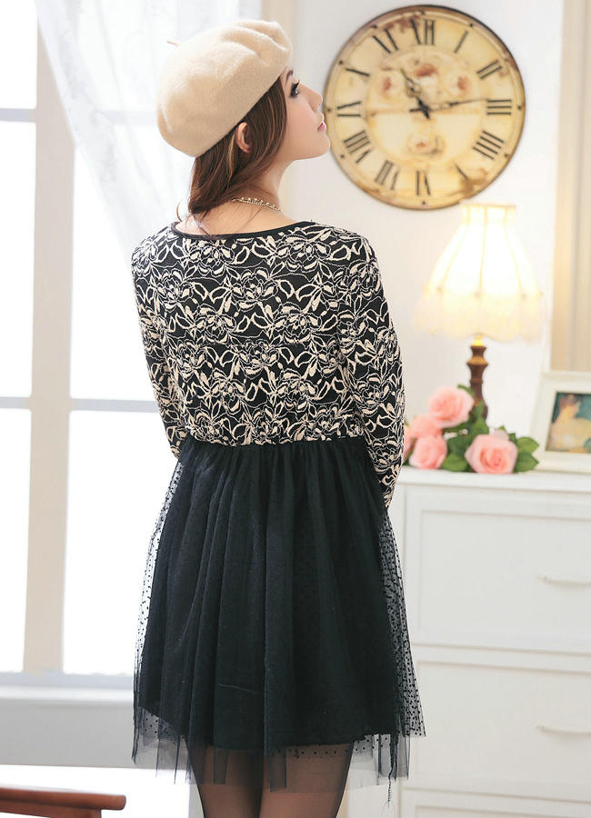 AAA คอกลม แขนยาว ใต้อกประดับลลูกไม้ถักปราณีต ช่วง