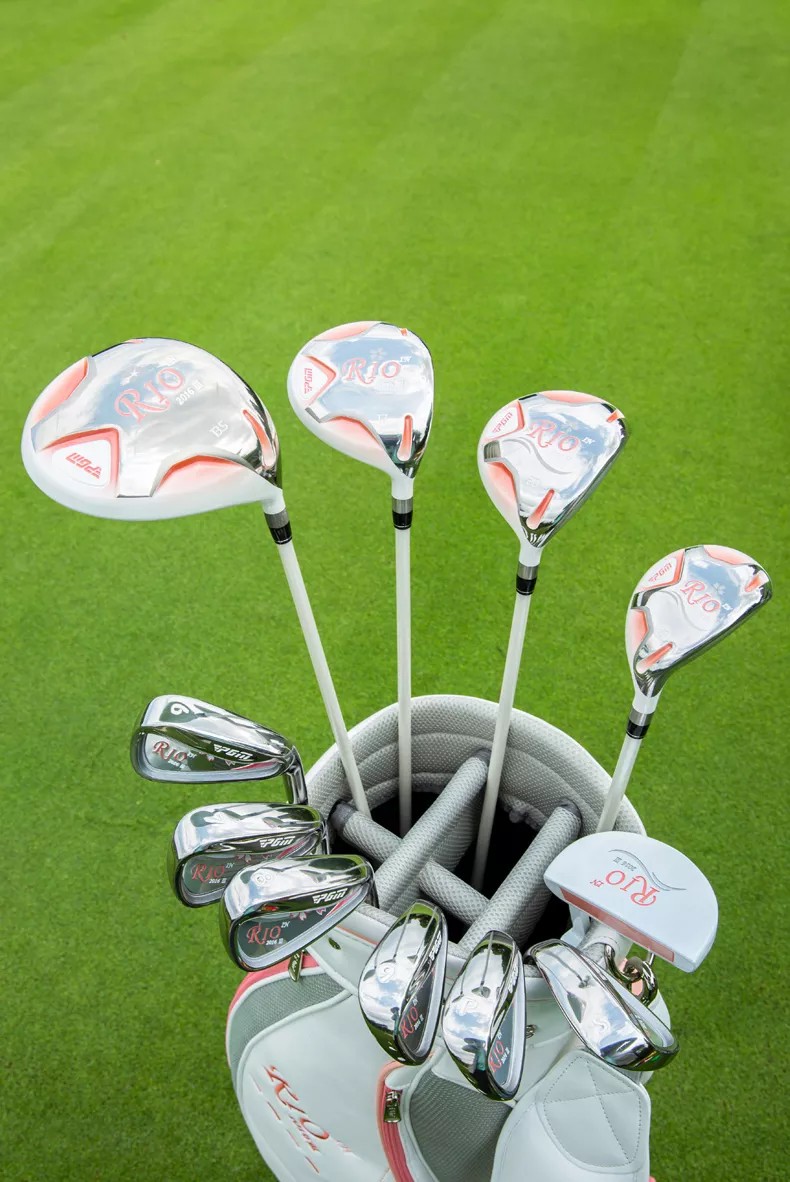 FULL RIO III GOLF CLUBS COMPLETE SET WOMEN ไม้กอล์ฟระดับพรีเมี่ยม เหมาะสุภาพสตรี เบา ตีง่าย คอนโทรลเยี่ยม ชดเชยการตีพลาดได้ดี ง่ายกว่านี้ไม่มีอีกแล้ว!!! ชุดกอล์ฟรุ่นใหม่เอี่ยม ยังหุ้มพลาสติกอยู่ ออกเเบบมา สวยงาม ทั้งก้านลาย เเละหัวไม้เเละเหล็ก มีการออกแบบ