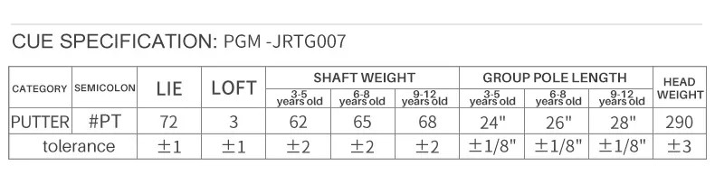 ไม้กอล์ฟ PUTTER สำหรับเด็ก PGM JRTUG007