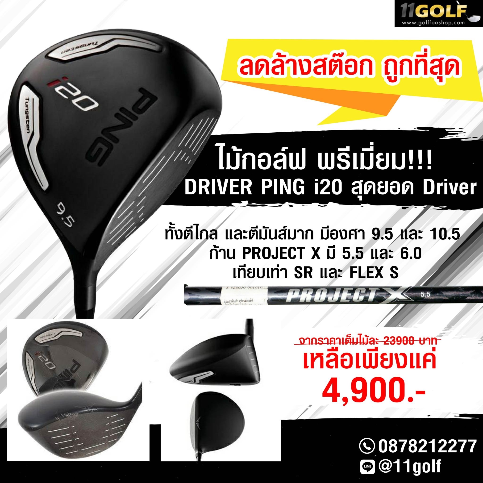 DRIVER PING i20 สุดยอด Driver ทั้งตีไกล และตีมันส์มาก มีองศา 9.5 และ 10.5 ครับผม ก้าน PROJECT X มี 5.5 และ 6.0