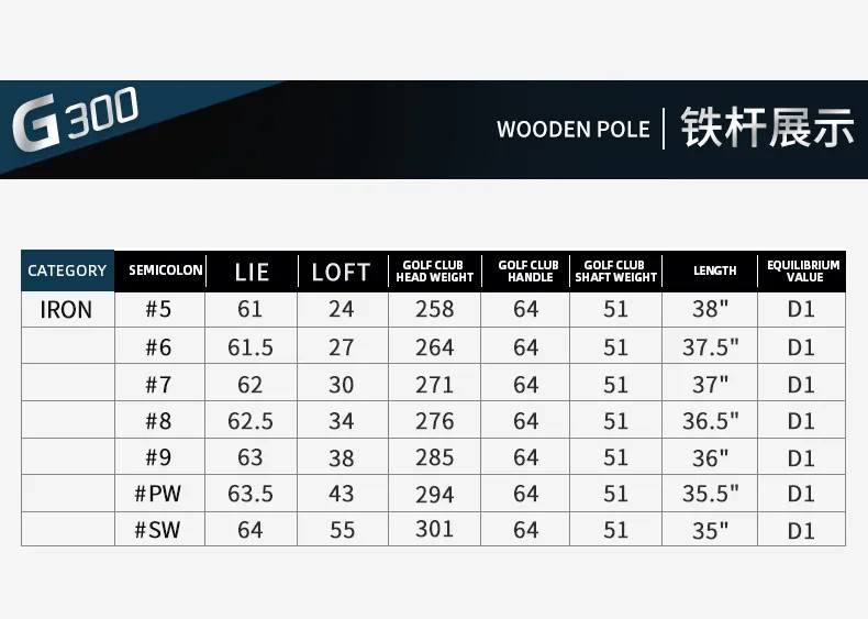 2.ชุดเหล็ก G300 TYPE ก้านกราไฟต์ มีตั้งแต่เหล็ก 5 6 7 8 9 PW SW