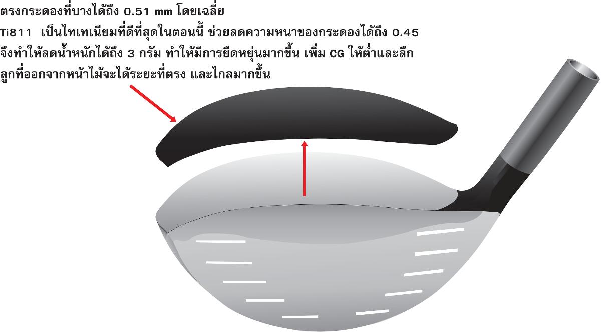 จึงทำให้ลดน้ำหนักได้ถึง 3 กรัม ทำให้มีการยึดหยุ่นมากขึ้น เพิ่ม CG ให้ต่ำและลึก ลูกที่ออกจากหน้าไม้จะได้ระยะที่ตรง และไกลมากขึ้น