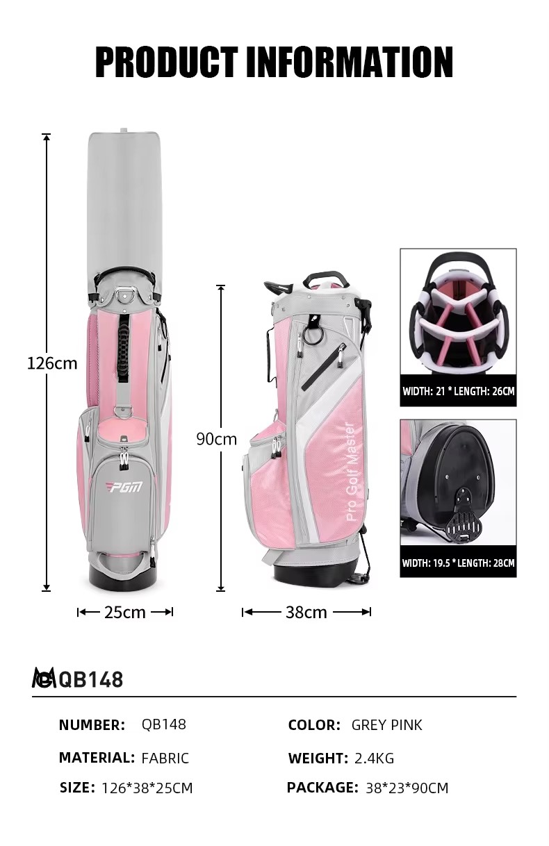 PREMIUN STAND BAG PGM QB148 ถุงกอล์ฟเเบบ 7 ช่อง สามารถเเยกไม้กอล์ฟเเละ ก้านกริพ ไม่ให้เสียดสีกัน ป้องกันไม้กระเเทกกันได้ดี สี: เทาชมพู เทาเขียว น้ำหนัก 2.4 kg ขนาด 126*38*25 cm 1. ตัวแบ่ง ความจุขนาดใหญ่ ทนต่อแรงกระแทก 2. น้ำหนักเบา เพียง 2.4 kg.