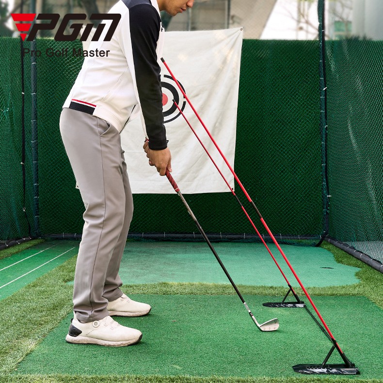 PGM Golf Swing Practice Corrector เทรนเนอร์สวิง สี: แดง ดํา วัสดุ: แท่งไฟเบอร์กลาสสีแดง, แท่งเหล็กสีดํา, ฝาครอบป้องกันยาง PVC, ข้อต่อไนลอน, แผ่นมุม ABS, ตัวยึด น้ําหนัก: 0.86กก ลักษณะเฉพาะ: