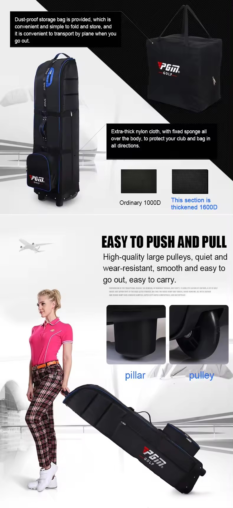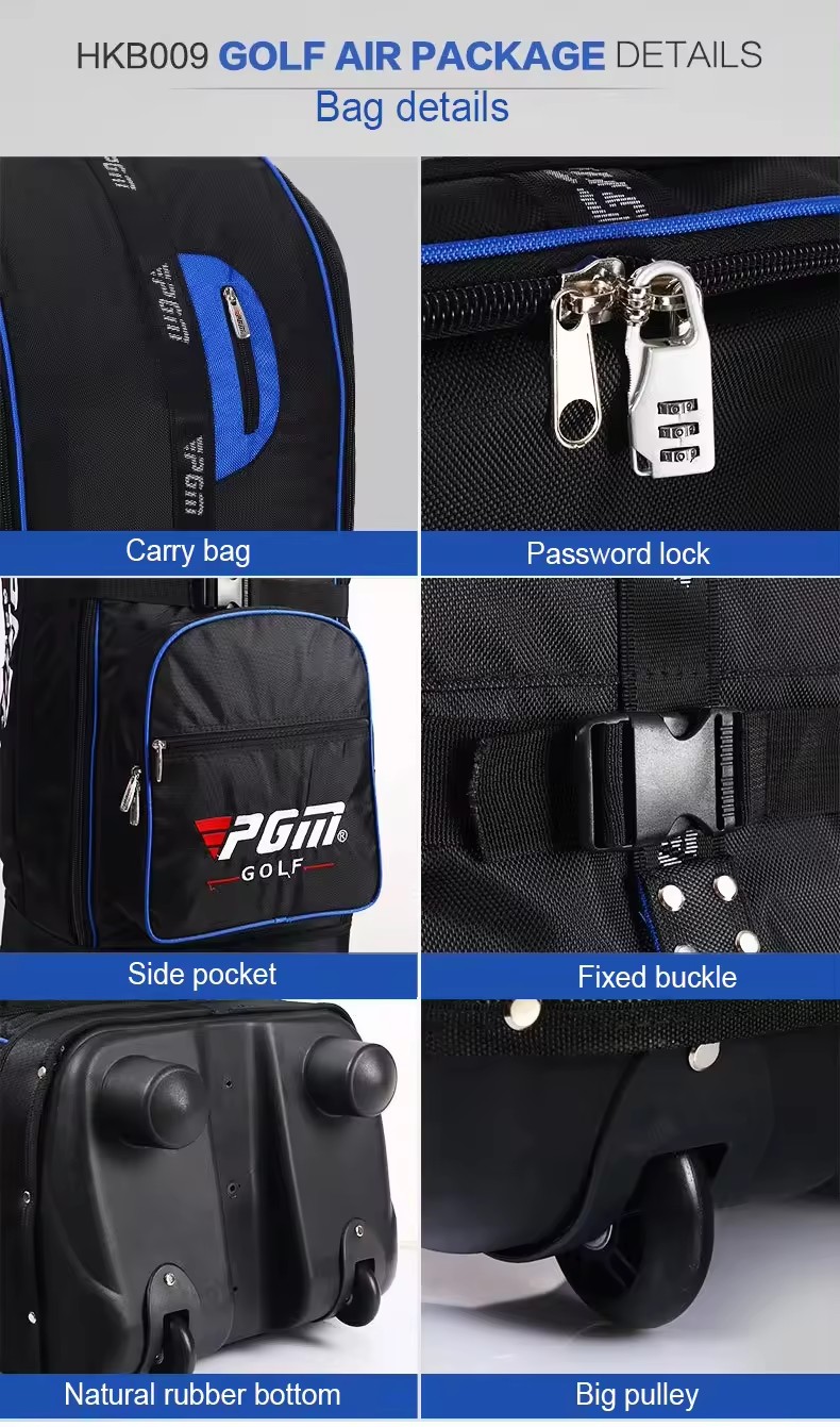 PGM HKB009 travel cover golf bag waterproof มีสีให้เลือก 3สี ดำน้ำเงิน ดำเเดง ดำเทา แบบมีล้อลาก ใช้งานง่าย ดีไซด์ออกแบบสวยงามมากๆ ครับ มีไสตล์