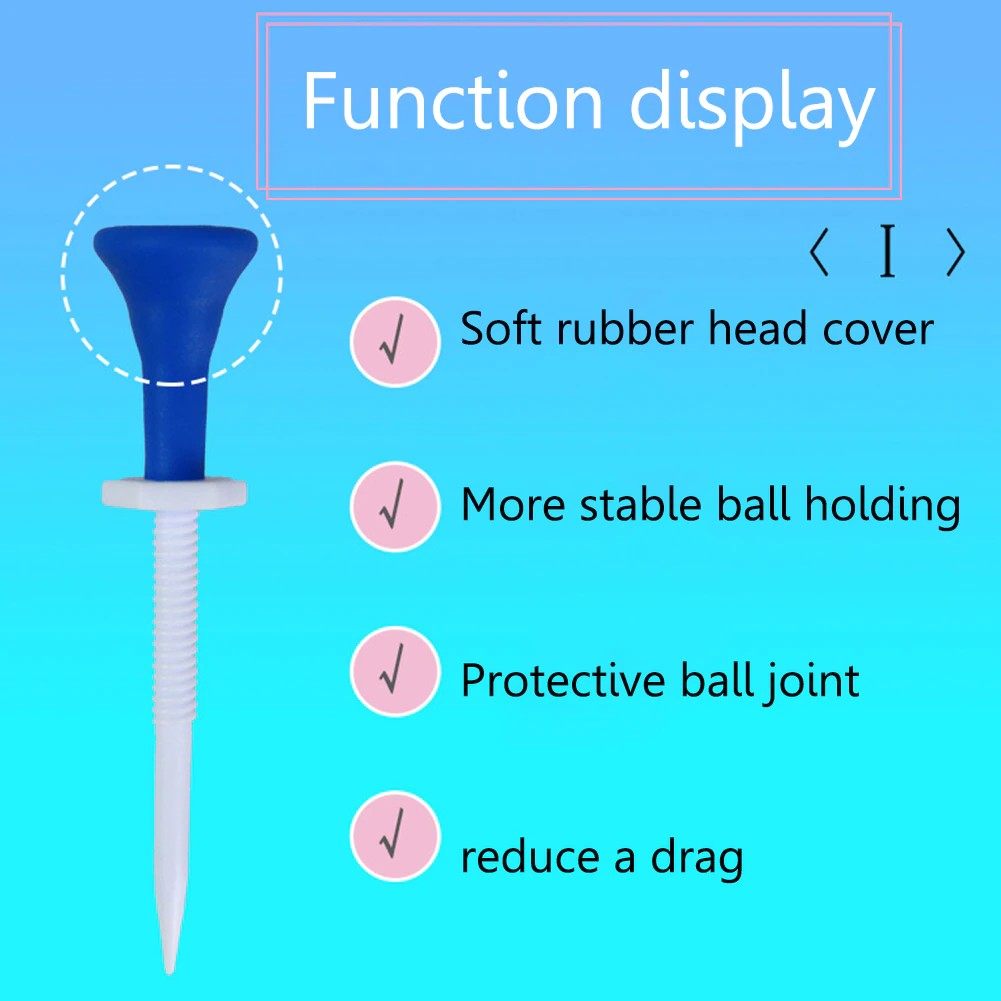 golf Tees adjustable คุณลักษณะ: 1.คุณภาพสูง:ลูก TEE ที่มีคุณภาพสูงวัสดุ, ทนทานสำหรับการใช้งานในระยะยาว, น้ำหนักเบาพกพาสะดวก. 2. Stable:หัวยางนุ่มปกมีเสถียรภาพมากขึ้นถือลูกบอล, ปกป้องหัวลดความต้านทาน 3.ความสูงปรับได้:ด้านบนและ22มม.ของ TEE