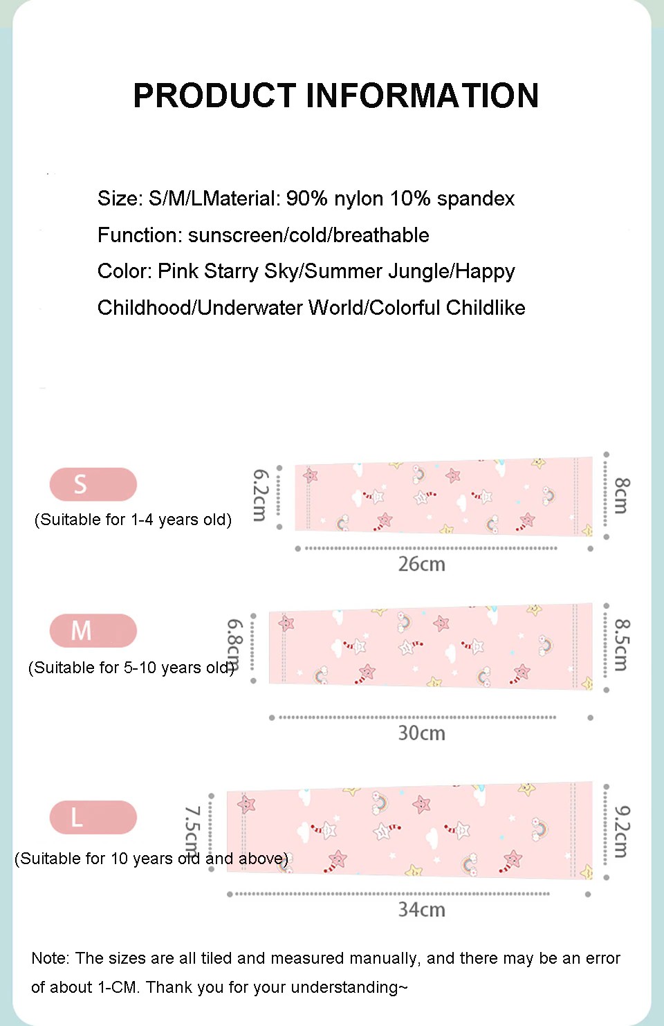 ปลอกแขนกัน UV สำหรับเด็ก ป้องกันแสง เนื้อนุ่ม ใส่สบาย ปลอกแขนกันแดด ป้องกันรังสียูวี UV ใส่เล่นกีฬาทุกชนิด ปลอกแขน ซึ่งระบายอากาศได้ดี เนื้อผ้า ไนลอน 90% 10% S