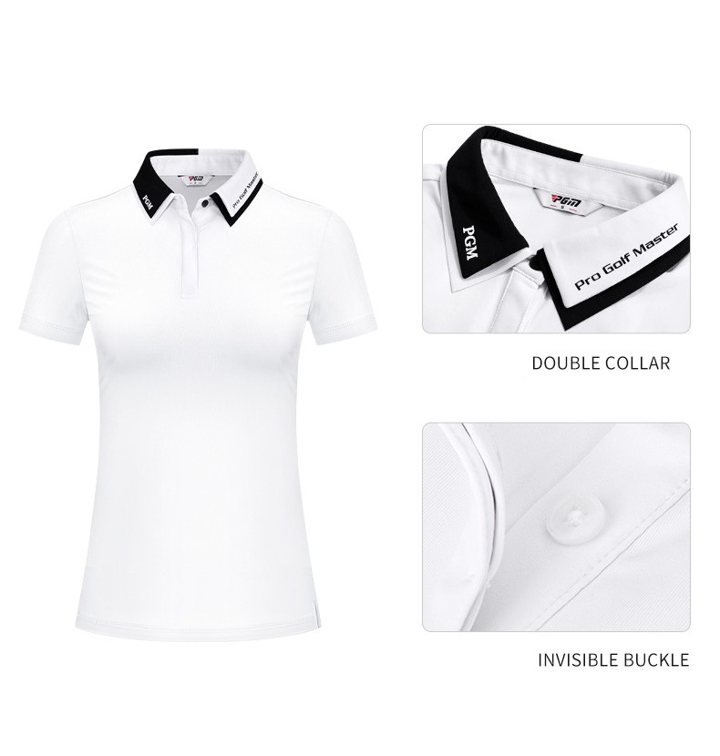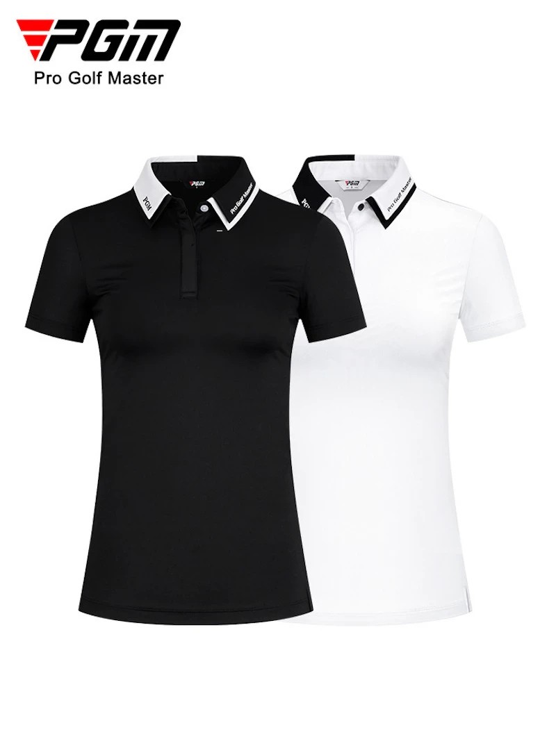 เสื้อกอล์ฟเเขนสั้น PGM Golf Women 'S ใส่สวย ใส่สบาย เนื้อผ้าดีมากเสื้อกอล์ฟ แขนสั้น สำหรับผู้หญิง สี: สีขาว/สีดำ