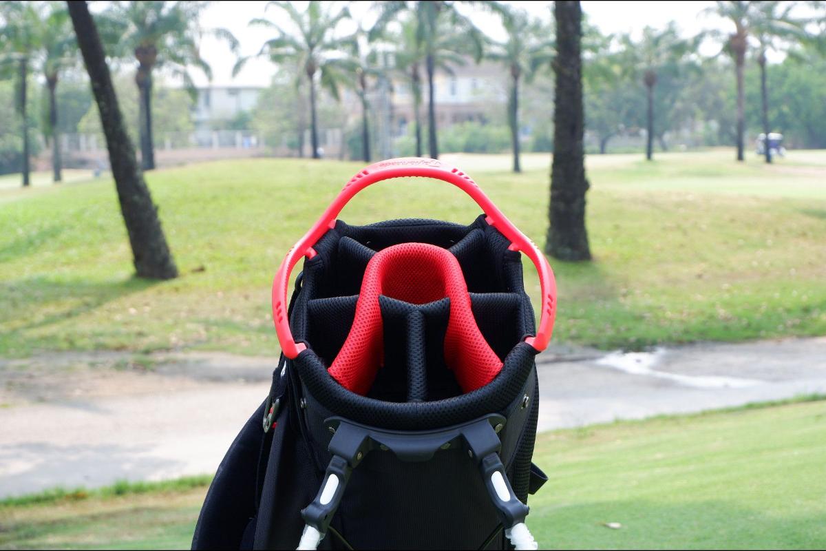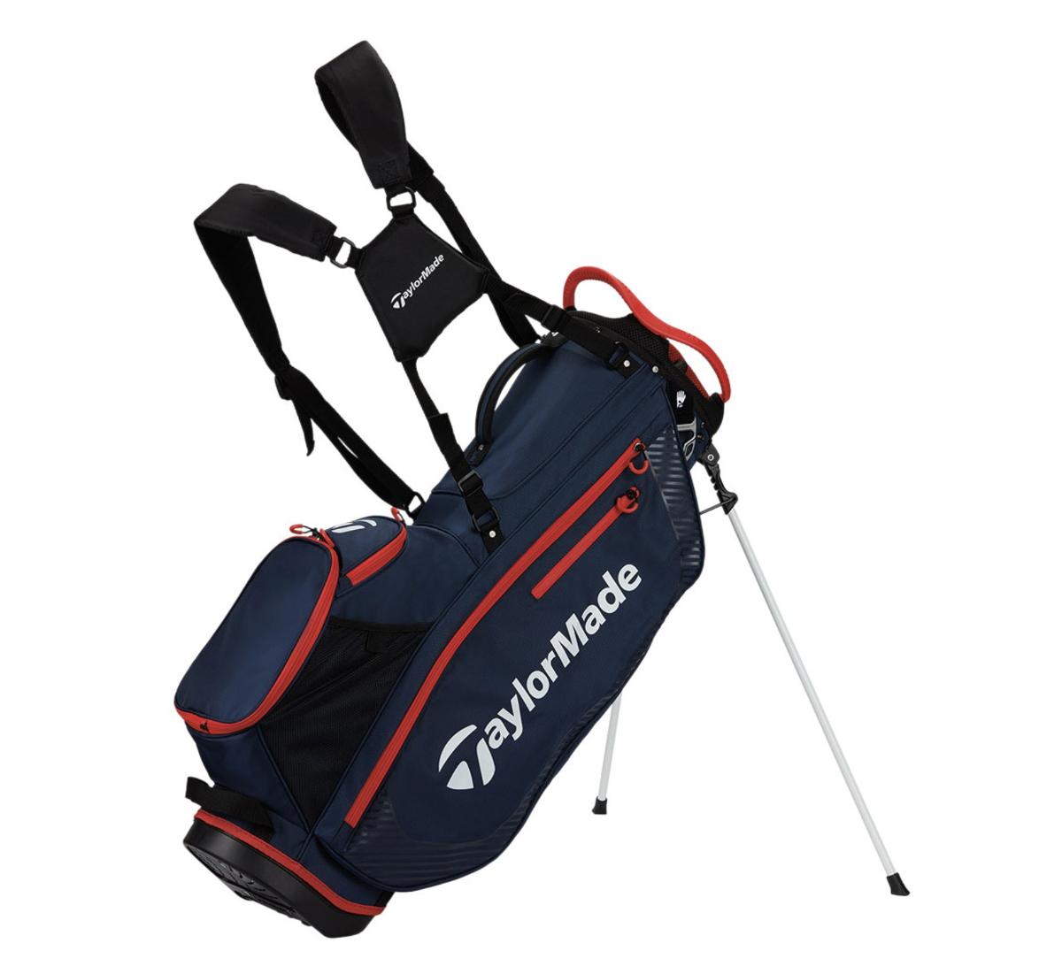 TaylorMade PRO Stand Bag BLAKRED กระเป๋าขาตั้งบนสุด 9” ด้านบน 8 ทิศทางพร้อมที่จับในตัวด้านหน้าและที่จับ 2 อัน ด้านข้างบุด้วยตาข่ายระบายอากาศสีเข้ากัน ระบบขาตั้งอัตโนมัติแบบติดตั้งสูงน้ำหนักเบา