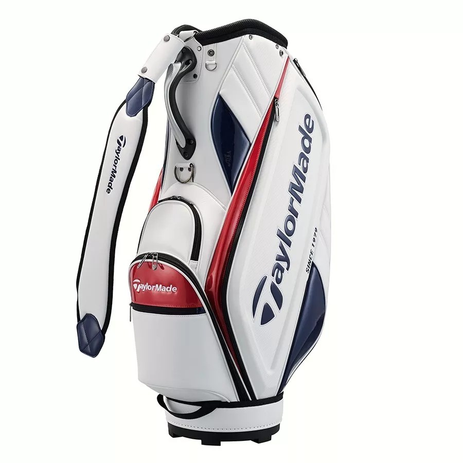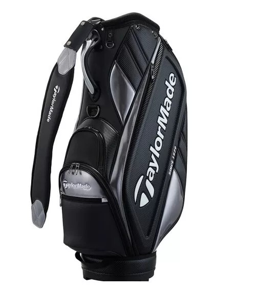 ผลิตภัณฑ์: กระเป๋ากอล์ฟสไตล์สปอร์ตและทันสมัยพร้อมดีไซน์เก๋ไก๋สีเดียวพร้อมพื้นผิวที่สวยงามและโลโก้ TAYLORMADE