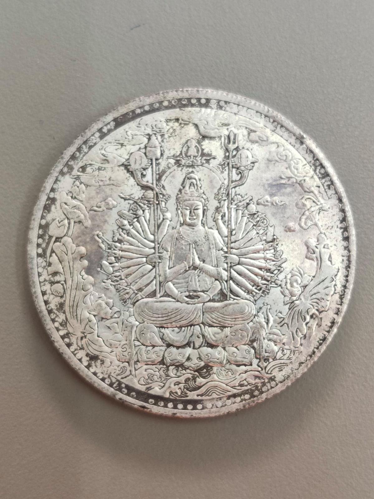 เหรียญพระกวนอิม พันมือ ปางสำเร็จมรรคผล โปรดสัตว์หมื่นโลกธาตุ ขนาด 4.5 เซนติเมตร