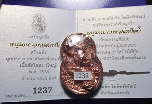 เหรียญกริ่งหนุมานอารยสถาปัตย์ฯเนื้อสัตตโลหะพิมพ์ใหญ่ NO.1237อุปกรณ์ครบท่านอาจารย์อาจารย์เฉลิมชัยกรุณาลงลายเซ็นต์เรียบร้อยแล้ว ปี 2559
