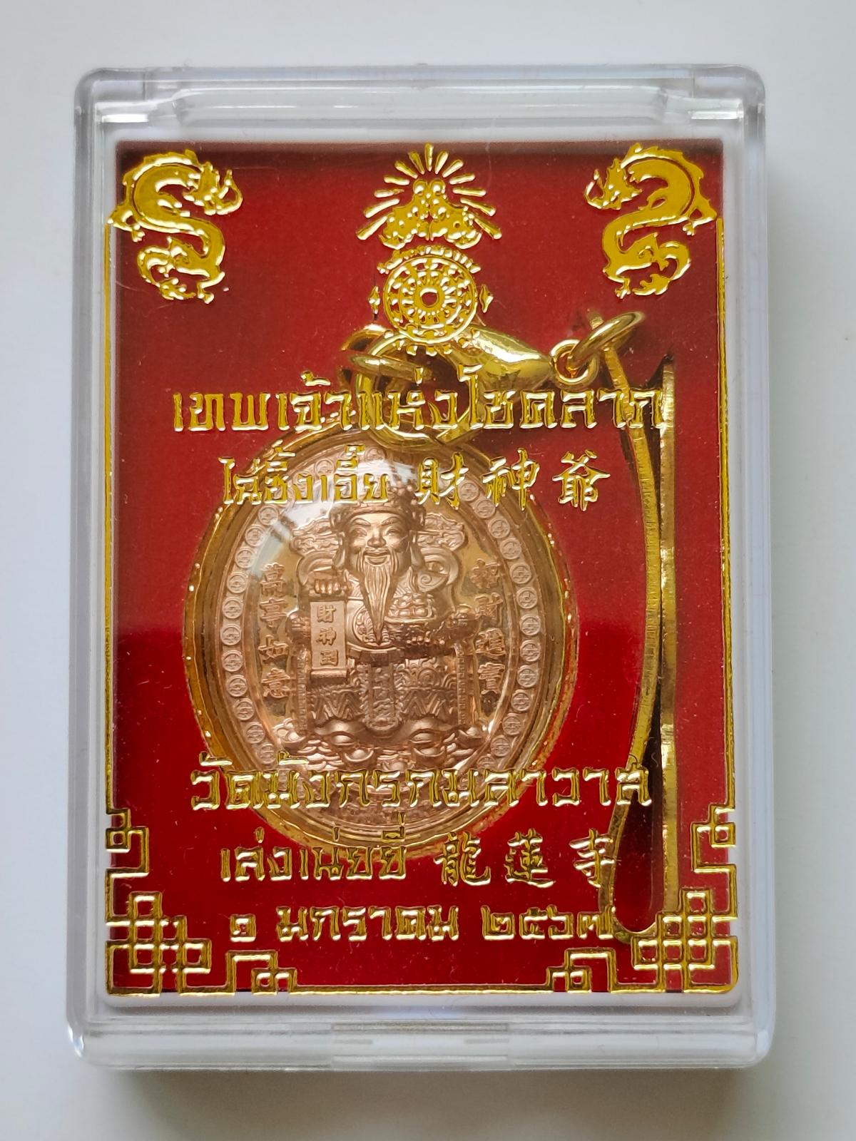 เหรียญ เทพเจ้าแห่งโชคลาภ ไฉ่ซิ้งเอี๊ย เนื้อทองแดงกะหลั่ยนาค วัดมังกรกมลาวาส เล่งเน่ยยี่ 1มกราคม 2567