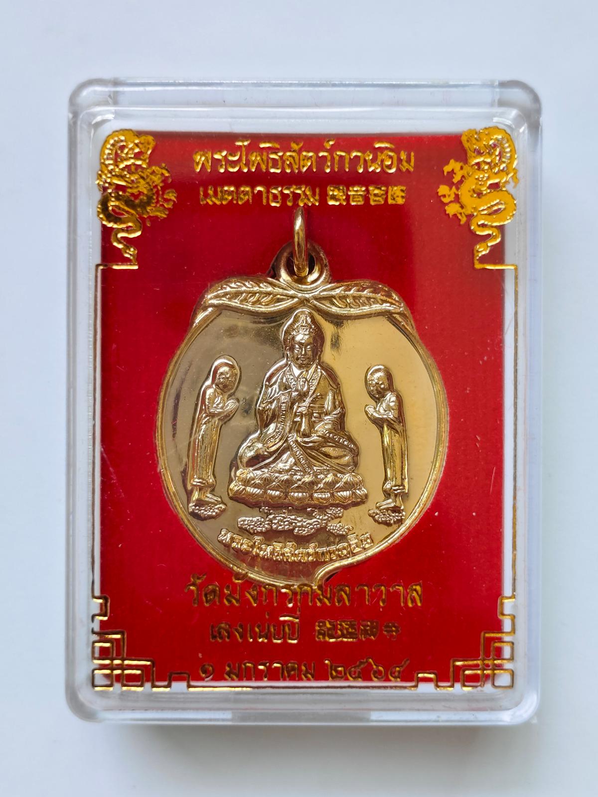 อีเมลล์: meteekit@yahoo.co.thเหรียญกะหลั่ยทองลูกท้อ รูปพระโพธิสัตว์ เจ้าแม่กวนอิม พร้อมบริวารซ้ายขวา ด้านหลังมังกรและหงส์ฟ้า อักษรมงคลสมปรารถนา ปี2564 วัดมังกรกมลาวาส เยาวราช