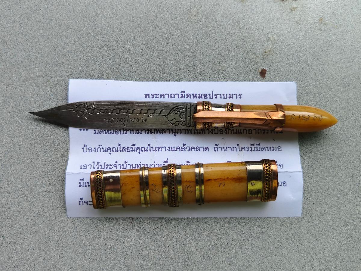 อีเมลล์: meteekit@yahoo.co.thมีดหมอ ปราบมาร หลวงปู่หงษ์ พรหมปัญโญ วัดเพชรบุรี รุ่นเพิ่มทรัพย์เพิ่มสุข ปี 2553 ขนาดยาว 5 นิ้ว ด้ามและฝักมีดทำจากกระดูก รัดด้วยทองแดงศิลปะโบราณนครสวรรค์