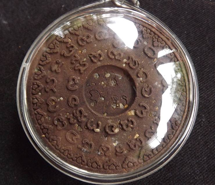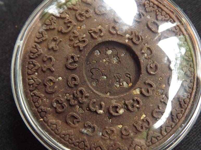 สร้าง โดยคุณอำพล เจน ด้านหลังพระผงจารอักษรธรรมโบราณอิสานว่า อะ งะ สะ (เป็นตัวย่อหัวใจพญานาค) และเม็ดปฐวีธาตุที่อธิฐานจิต โดยลป.คำพันธ์