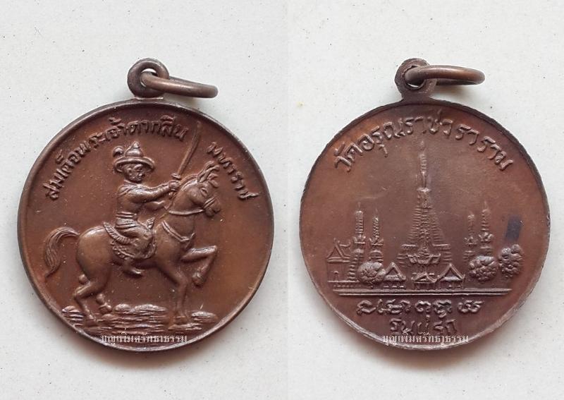เหรียญ(รุ่นแรก.) "สมเด็จพระเจ้าตากสินมหาราช." วัดอรุณราชวราราม ธนบุรี ทรงม้าออกศึก ชนะข้าศึกทุกครั้ง