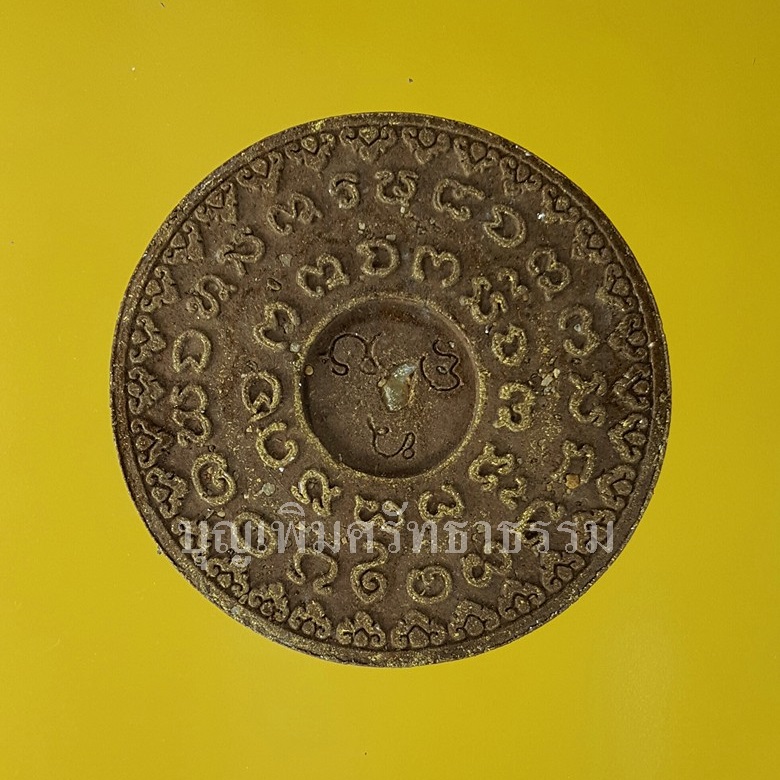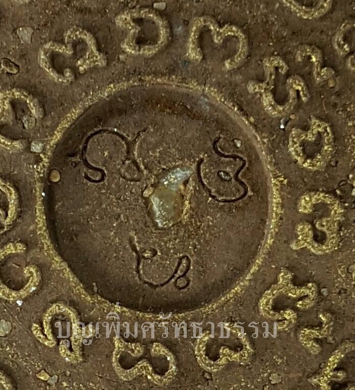 ด้านหลัง...จารอักษรธรรมโบราณอีสานเป็นอักขรคาถามีใจความว่า“อุ ปะ วะ ทะ ยะ จะ อะ สะ พะ ระ มะ ชะ จะ พะ กะ สะ นะ มะ พะทะ” อยู่รอบนอก แล้วก็ “พะสะคะ จะกะพะจะกะสี จะพะสีกะ” อยู่รอบใน ส่วนตรงกลางก็เป็นหัวใจพญานาค “อะ งะ สะ” และโรยเม็ดปฐวีธาตุที่อธิษฐานจิต โดย ลป.คำพันธ์