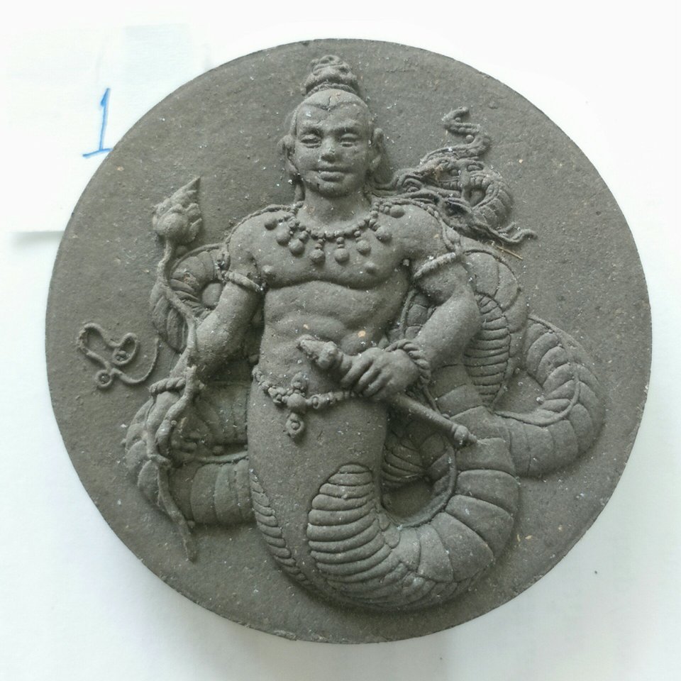 นาคาธิบดีศรีสุทโธ รุ่นสอง เนื้อดำฝังแผ่นทองเหลือง (1)