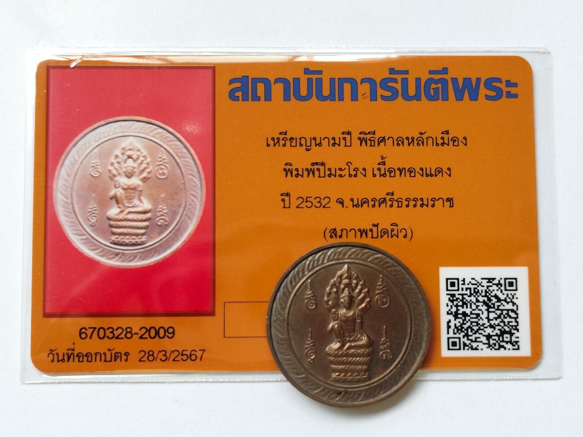 เหรียญนามปี ปีพ่อ (ปีมะโรง) เนื้อทองแดง หลักเมืองนครศรีธรรมราช รุ่นแรก ปี พ.ศ.2532 ไม่ผ่านการใช้ รับ