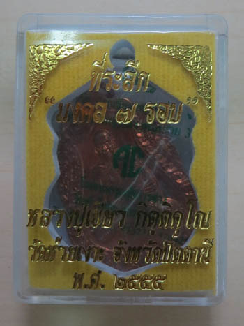 เหรียญที่ระลึก มงคล7รอบ หลวงปู่เขียว กิตฺติคุโณ วัดห้วยเงาะ จ.ปัตตานี เนื้อทองแดงผิวไฟ ยันต์รับทรัพย