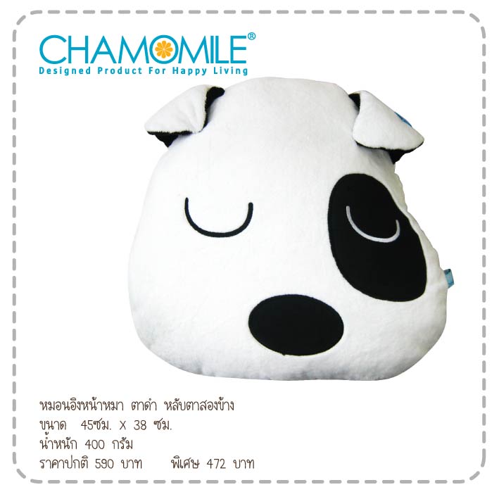 หมอนอิงหน้าหมาตาดำ หลับตาทั้งสองข้าง