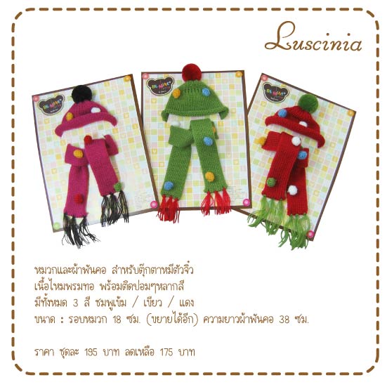 ผ้าพันคอสำหรับหมีจิ๋ว ทอจากไหมพรมเนื้อดี มี 3 สีให้เลือก ชมพูเข้ม แดง เขียว
