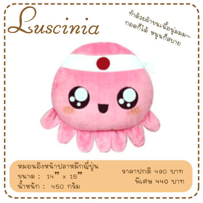หมอนอิงหน้าตุ๊กตาปลาหมึกญี่ปุ่น สีชมพู น่ารัก ใช้หนุน ใช้พิง หรือวางเพื่อประดับตกแต่งห้องต่างๆได้