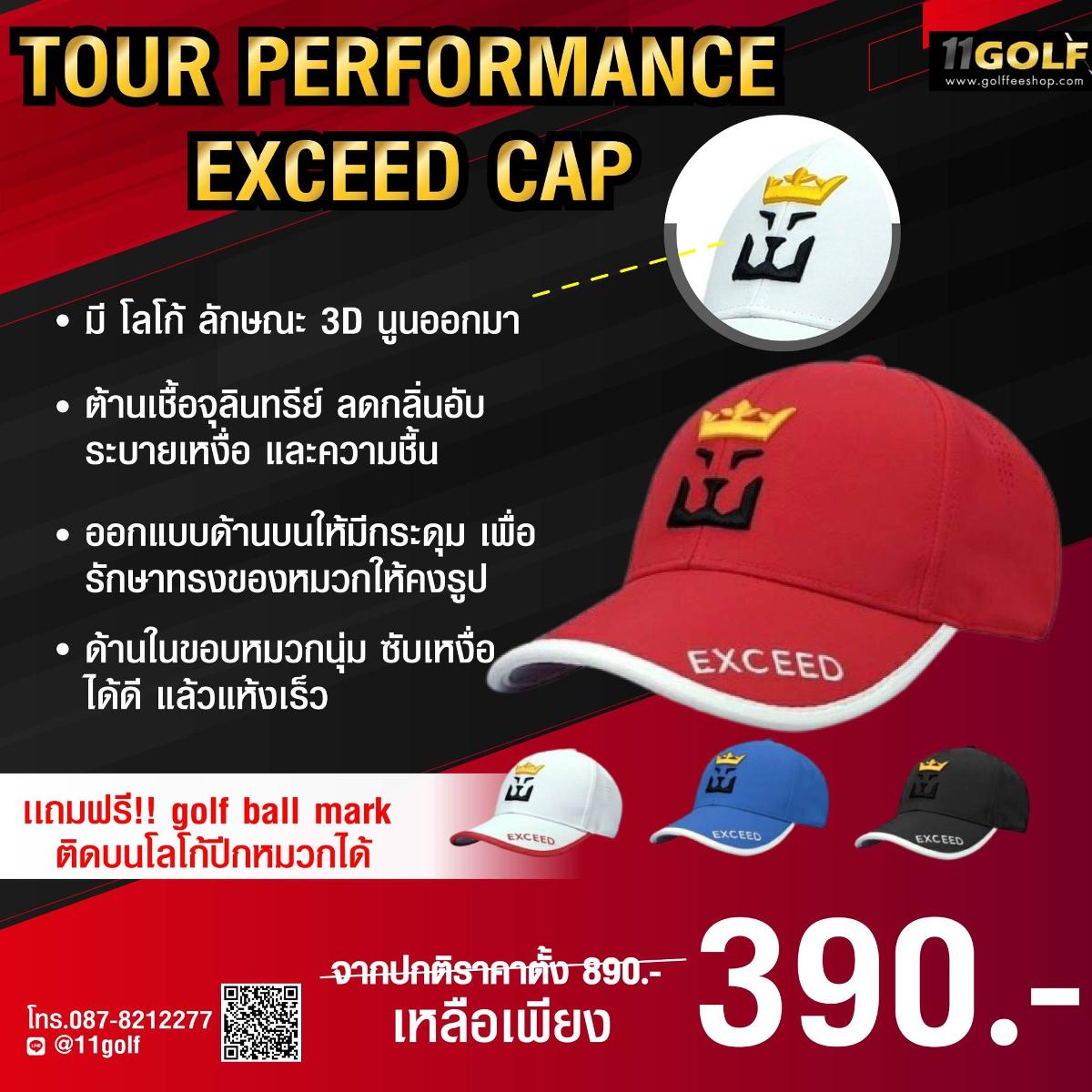 หมวกกอล์ฟ EXCEED CAP รุ่นใหม่ ชื่อแบรนด์อยู่บริเวณ ด้านหน้า มี โลโก้ ลักษณะ 3D นูนออกมา